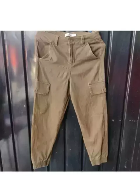 Es un muy bonito pantalón tipo joger color verde militar y una blusita ombliguera muy padre, el pantalón es talla 3 y la blusa talla ch