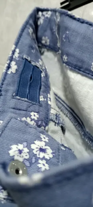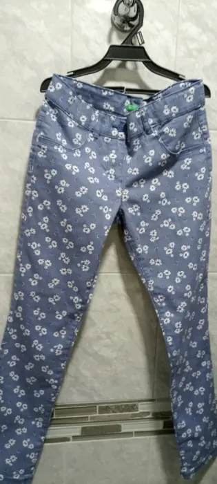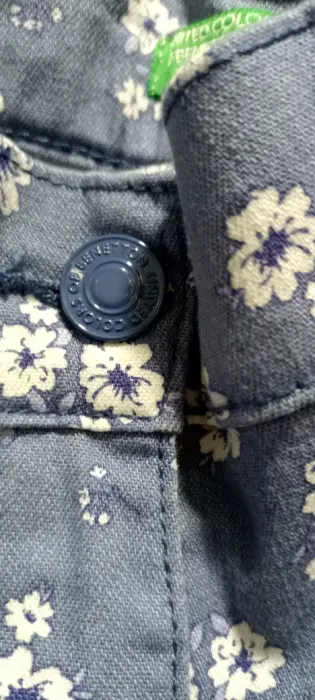 Jeans con flores. Pantalón largo, corte recto, confeccionado denim 100%algodon, práctico elástico interno regulable en la cintura