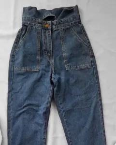 Jeans de ajuste mom tiro alto estilo vintage solo se uso 1 vez no tienen detalles esta en perfecto estado muy lindo
