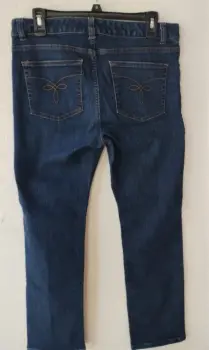 Jeans azul mesclilla corte recto talla 8 americano o 9 mexicano, tiene ligero strech, usado prácticamente nuevo sin detalle ni desgasteMide 42 cm de cintura, 45 cm cadera, tiro medio de 23 cm y 97 cm de largo