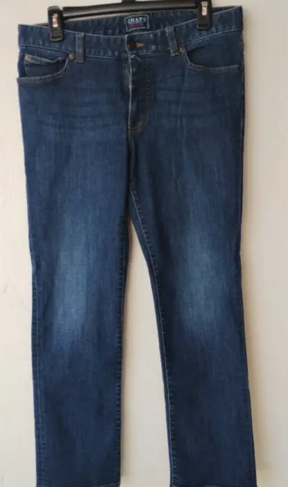 Jeans recto mezclilla Chaps M. Jeans azul mesclilla corte recto talla 8 americano o 9 mexicano, tiene ligero strech, usado prácticamente nuevo sin detalle ni desgasteMide 42 cm de cintura, 45 cm cadera, tiro medio de 23 cm y 97 cm de largo