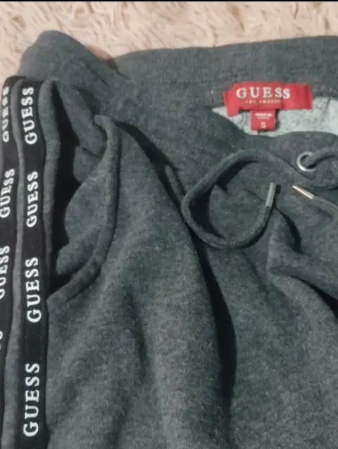 Jogger Guess gris s-m. Cómodo pans Guess talla S (le queda holgado), también queda a talla M (más justo), está en perfectas condiciones, tiene jareta para ajustar