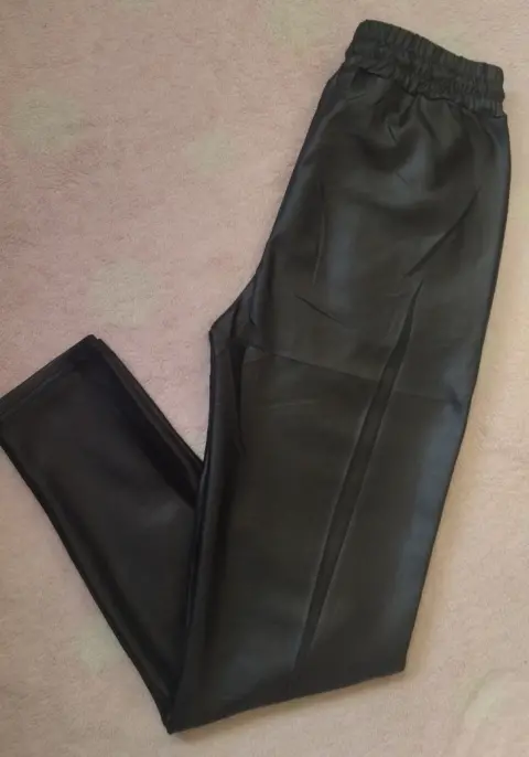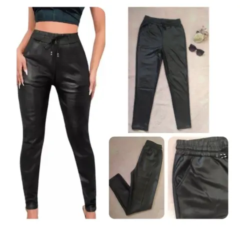 Jogger tipo vinipiel. 🌷Pantalón Jogger tipo Vinipiel *afelpado por dentro*, calientito, muy cómodo ...resorte en cinturaNegro, strechDa Talla S y M