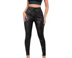 🌷Pantalón Jogger tipo Vinipiel *afelpado por dentro*, calientito, muy cómodo ...resorte en cinturaNegro, strechDa Talla S y M