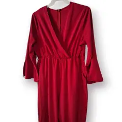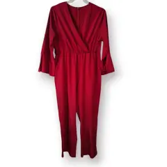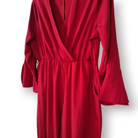 Jumpsuit Fiusha Manga Campana, con bolsas laterales, cierre en espalda y escote cruzado. Medidas de axila a axila 55cm cintura 45cm estira hasta 55cm, largo 144cm