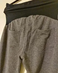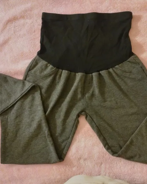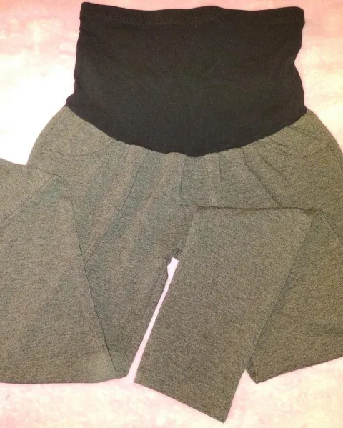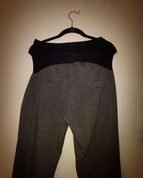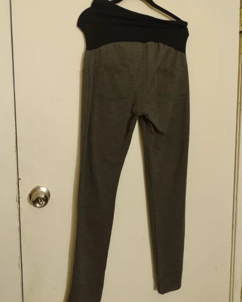 Leggin embarazada. Pantalón tipo leggin color gris y negro, tiene 2 bolsas atrás, estira bastante bien. La etiqueta dice talla 30 que es S (chica), sin embargo queda como M (mediana).Poco uso.