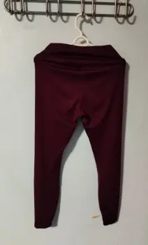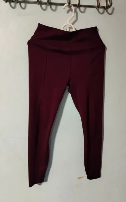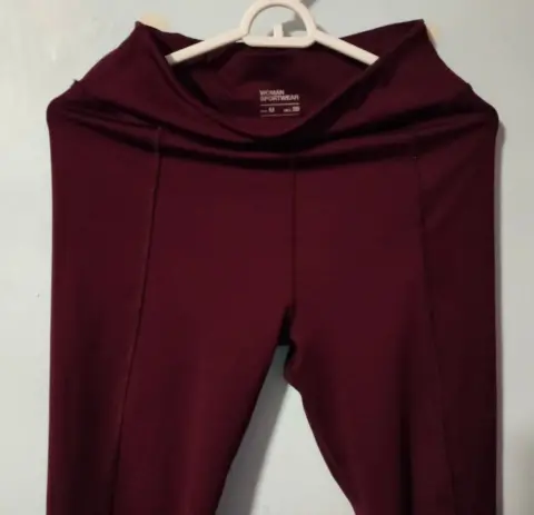 Legging deportivo color vino de uso pero con mucho tiempo de vida tiene un detalle está marcada en la última foto que fijándose a detalle lo notarás pero, a simple vista no yo creo que tiene arreglo está muy bonito marca talla M pero si viene reducido.