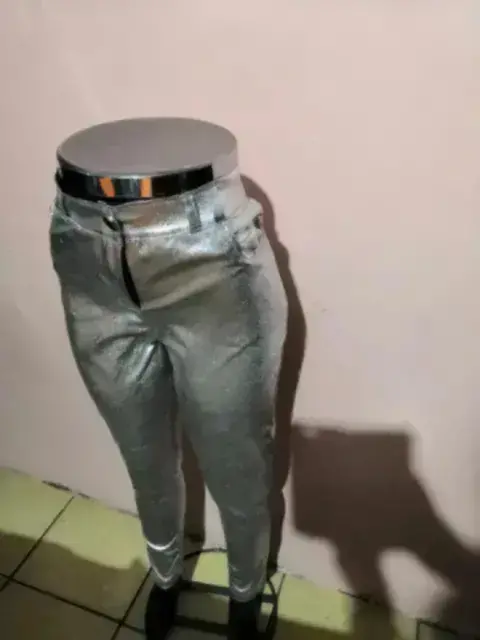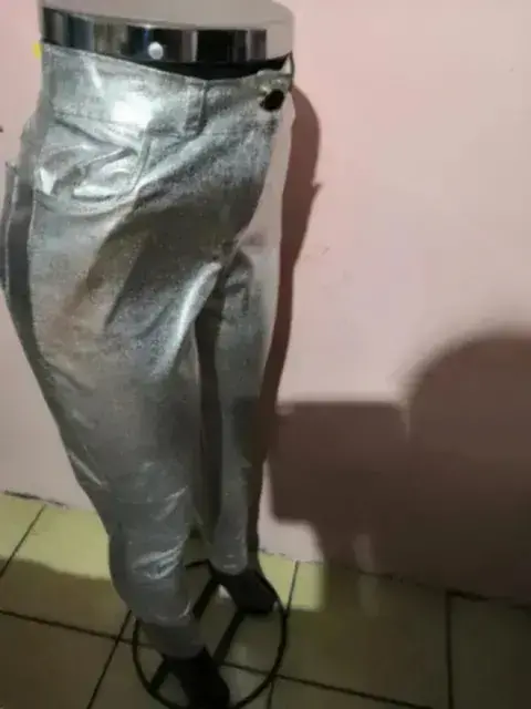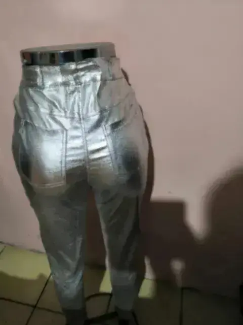 Legging color plateado tela stretch, queda entre talla 34-36, el interior de la tela no es plastica, la bolsa traseras son funcionales, da a la cintura