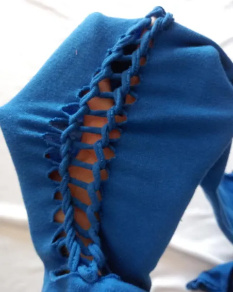 Leggins azul con abertura en los costados mide alrededor de la cintura 70 cm tiene de tiro 28 cm