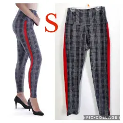 Leggins cuadros con franja. Leggins cuadrosTienen franja roja al costado.La tela se siente tipo piel de duraznoCon mucho strech.La talla es XL de adolescente, queda perfecto para talla S de adulto.Sin detalles y en perfecto estado.