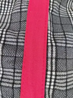 Leggins cuadrosTienen franja roja al costado.La tela se siente tipo piel de duraznoCon mucho strech.La talla es XL de adolescente, queda perfecto para talla S de adulto.Sin detalles y en perfecto estado.