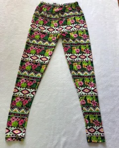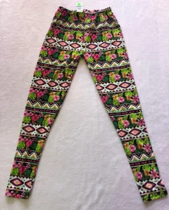 Leggins multicolor de marca americana. Leggins floreado la tela estira mide alrededor de las cintura 59 cm y de tiro 27 cm