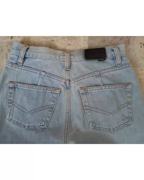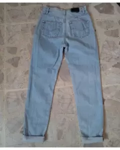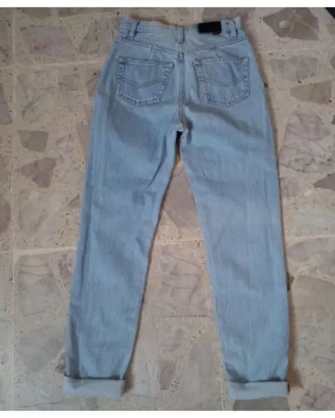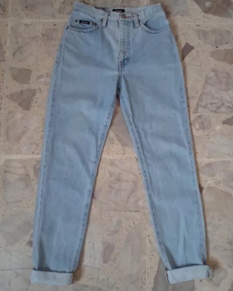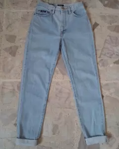 Mom jean. Mom jean-Mezclilla clara-Largo: 103 cm-Cintura 65 cm (esto es lo que midió, pero yo de cintura mido 70 cm y me queda bien)-Pierna: 38 cm-Tiro: 30 cm