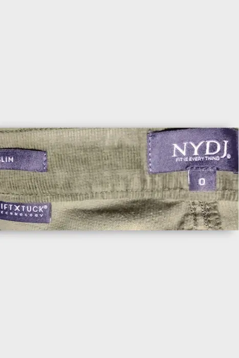 NYDJ Pantalón Slim Dama Algodón Verde XXS 0. NYDJ Pantalón Slim Dama Algodón Verde XXS 0Marca: NYDJOrigen: ChinaMaterial: 98% Algodón 2% SpandexTalla: XXS - 0Estilo: PantalónPatrón: SlimColor: Verde Oliva Cierre: Cremallera y BotónCintura: 35 cmCadera: 41 cmLargo: 94 cmTiro: 19 cmMuslo: 19 cmEntrepierna: 25 cmRopa de USO en muy buen estadoModelo único Lo que ves es lo que comprasAclara todas tus dudas antes de comprar