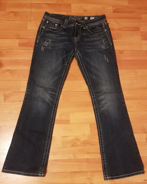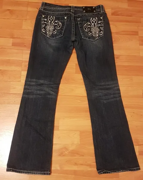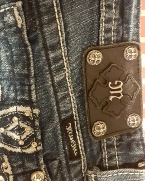 Pantalón Miss Me talla 28 mide 40 cm de pretina y 80 cm de circunferencia de cintura, 49 cm de cadera y 98 cm de largo