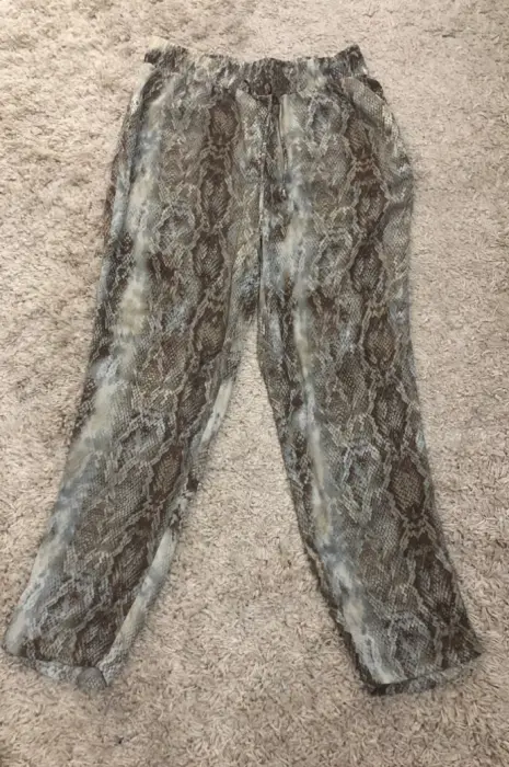 Padrisimo pantalón estilo palazzo en snake print. Lindo pantalón tipo palazzo, es súper cómodo , tiene jareta para ajustarse al frente , tela con bastante caída , moderno y fácil de llevar con sandalias o bien , zapato alto.