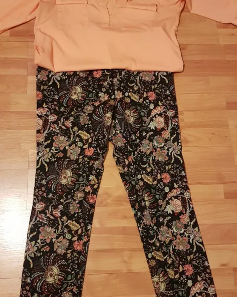 Padrisimo Pantalón Floreado. Pantalón de 42% algodon 37% polyester 18 % viscose y 3% elastane, mide 45 cm de cintura,55 mide cm de cadera y 99 cm de largo