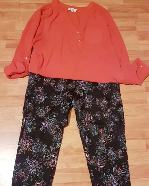 Padrisimo pantalon Floreado. Pantalón de 42% algodon 37% polyester 18 % viscose y 3% elastane, mide 45 cm de cintura,55 mide cm de cadera y 99 cm de largo