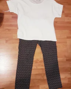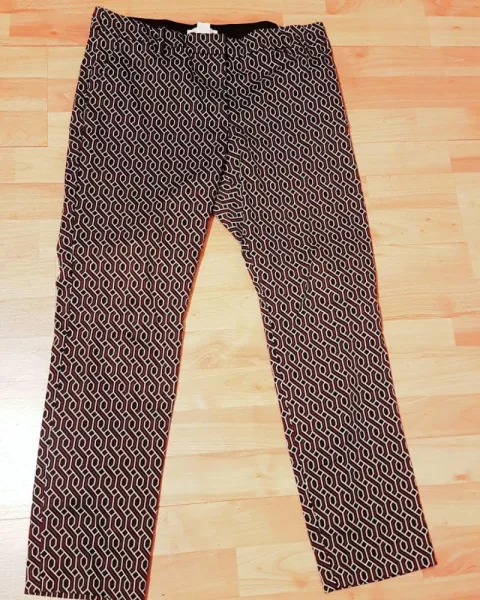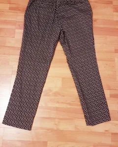 Pantalón de 42% algodon 37% polyester 18 % viscose y 3% elastane, mide 43 cm de cintura,51 mide cm de cadera y 99 cm de largo