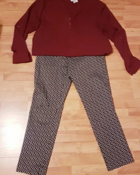 Padrisimo Pantalon Guinda. Pantalón de 42% algodon 37% polyester 18 % viscose y 3% elastane, mide 43 cm de cintura,51 mide cm de cadera y 99 cm de largo