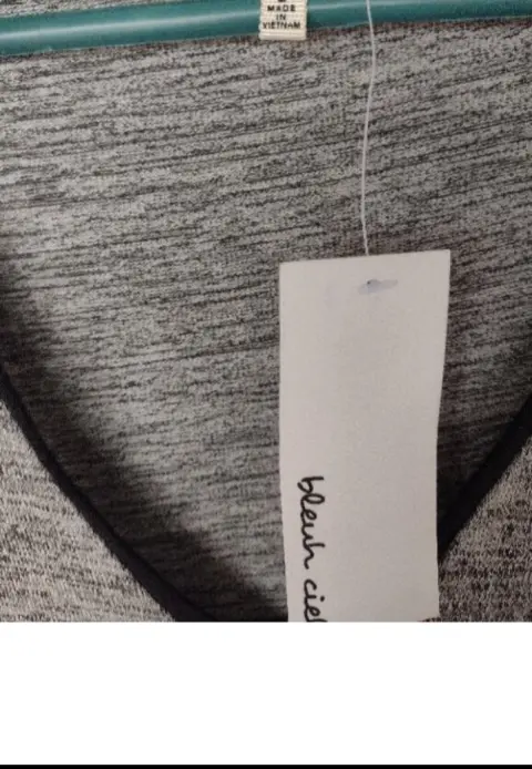 Es una prenda totalmente Nueva,son detalles,su color es tipo jaspeado.Y queda a tu figura con tela muy cómoda ajustable,tiene una cinta ala cintura.Fue comprado en u.s.a.Marca 💙 blue.