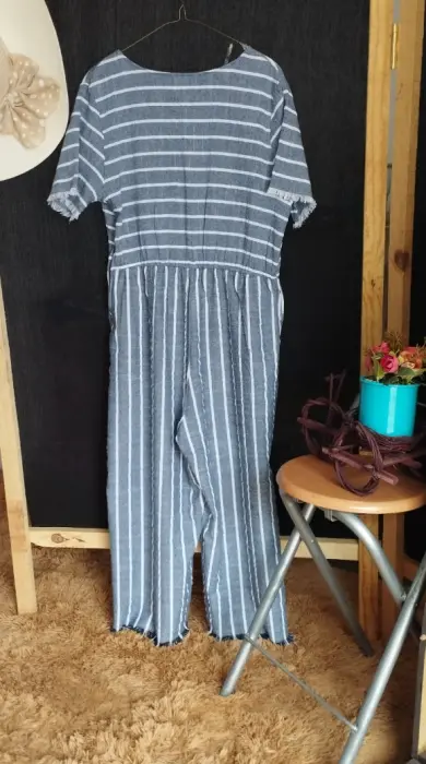 Bonito palazzo talla grande tela lino color azul con franjas blancas