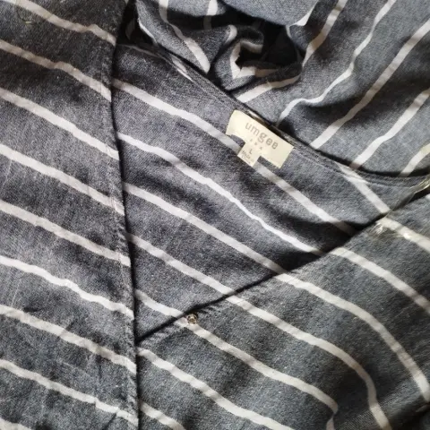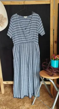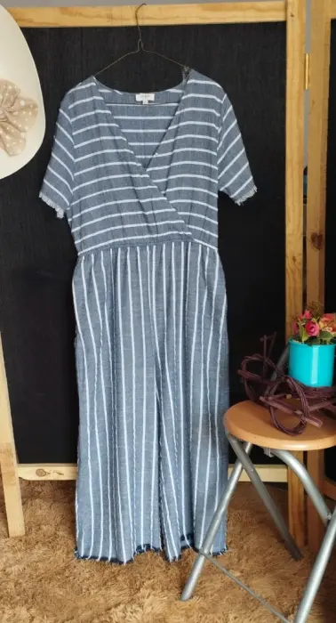 Palazzo. Bonito palazzo talla grande tela lino color azul con franjas blancas