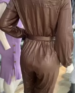 Palazzo resorte a la cintura cierre al frente Color Café claroTalla S y L