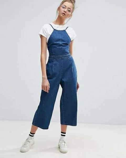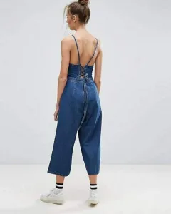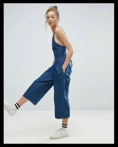 Palazzo denim de super mega calidad, es ASOS con etiqueta original🖤 Viene marcado como talla 12 Medidas: Cintura lado a lado 39 CMAxila a axila 49 cm (se reduce y se ajusta con el lace), largo 134 CM