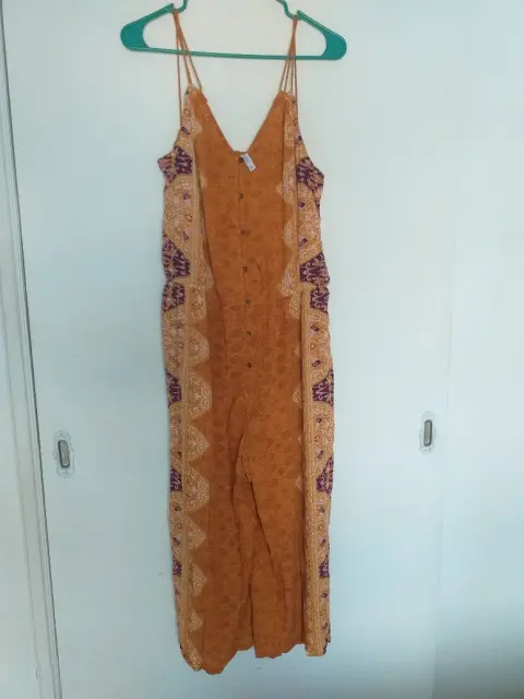 Palazzo estampado marca xhilaration. Palazo color mostaza,estampado,sin mangas con tirantes,a 3/4 de la pierna.,con botones al frente