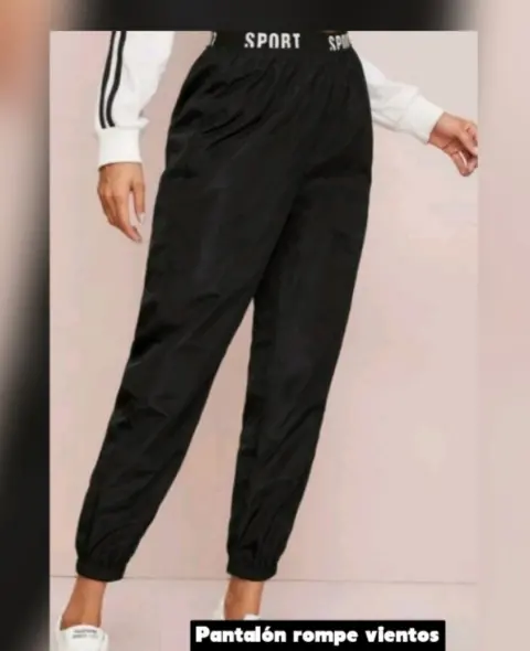 Pantalón rompe vientos tipo jogger con elástico en cintura y tobillo en color negro