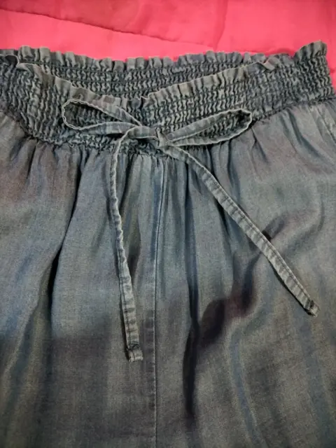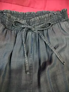 Pantalón color mezclilla azul, talla chico, 101cm largo, 53cm cadera, 25cm ancho pierna, con resorte