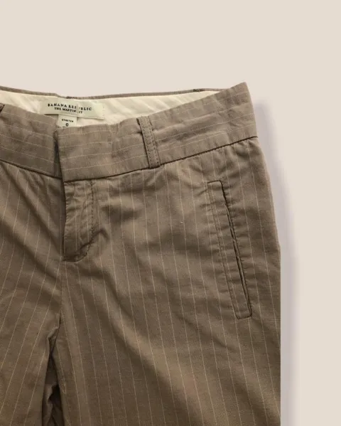 Pantalón a rayas en tono beige de Banana Republic, está en excelente estado únicamente tiene dos leves manchitas por dentro del forro que no se ven por afuera.