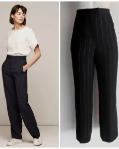Padrísimo Pantalón negro a rayas, las rayas son en color de combinación en hilos dorados y elegante glittter que se aprecian mejor en la última foto, cierre al frente, corte recto, precioso, de cintura alta calculo queda a talla 11 mexicana totalmente forrado por dentro, es una joyita para el armario ❤️🔥