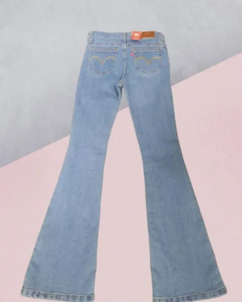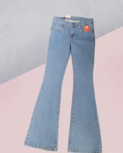 Pantalón acampanado de mezclilla talla 3, con strech arma muy lindo. La talla viene reducido una hacia abajo queda a talla 1