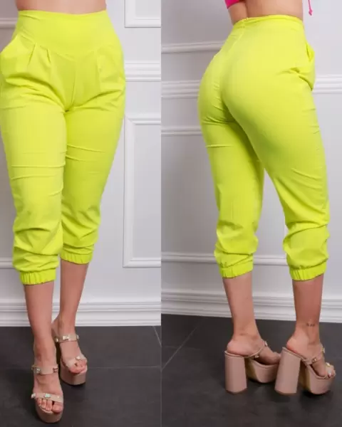 Pantalón amarillo fluorescente. Pantalón talla L amarillo fluorescente con cierre en la parte trasera
