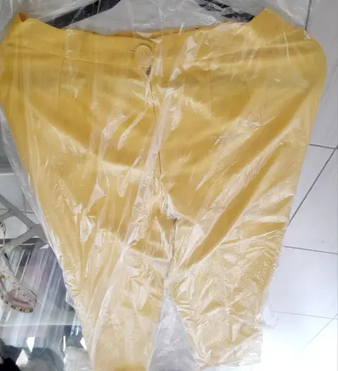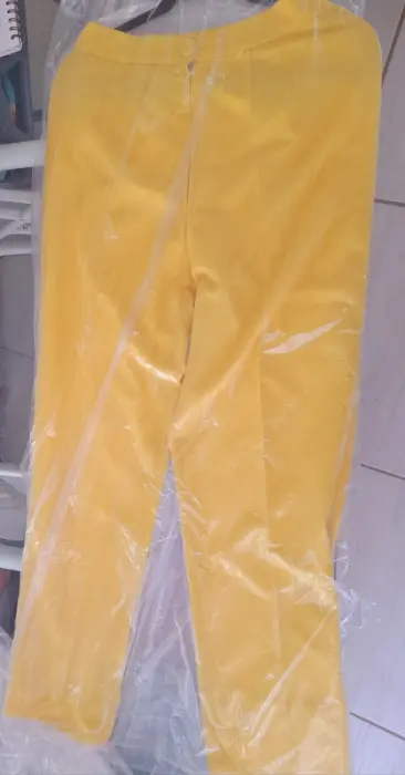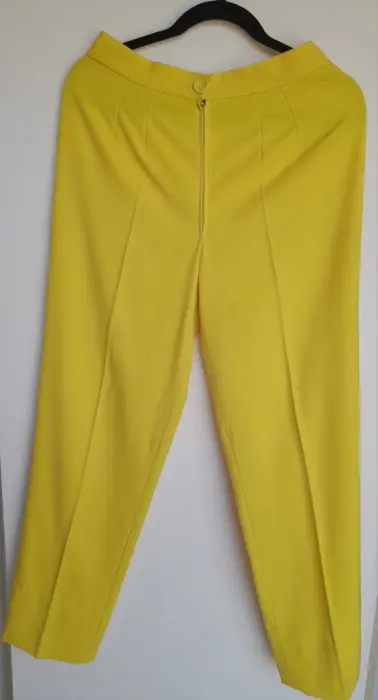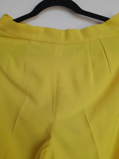 Pantalón amarillo recto S. Excelente confección del pNtakin, acabado a mano. Botón al frente y cierre. Línea recto. Color llamativo pero elegante, para combinarlo con mil prendas. Ropa fina y eterna. Cintura 32cm Cadera 45 ,cmAlto 100 cmTiro 26 cmExcelente estado de conservación. Como nuevo