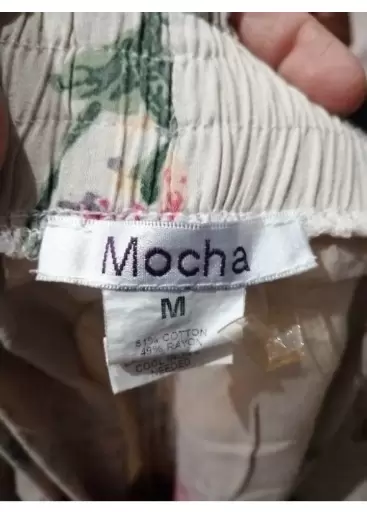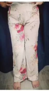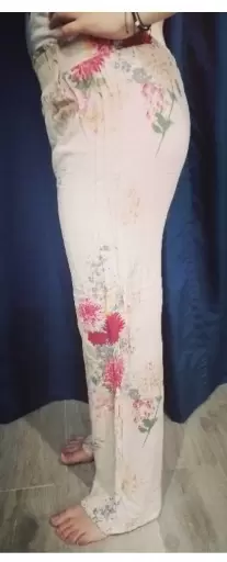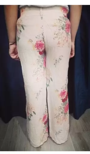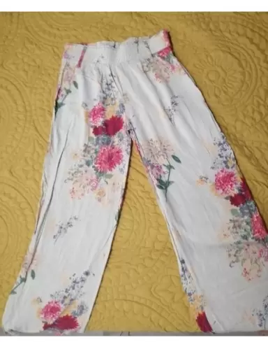 Pantalón amplio floreado, usado pero en perfecto estadoEs talla M, tiene resorte así que se ajusta mas pequeño o mas amplioLigeramente transparente, pero muy fresco
