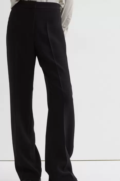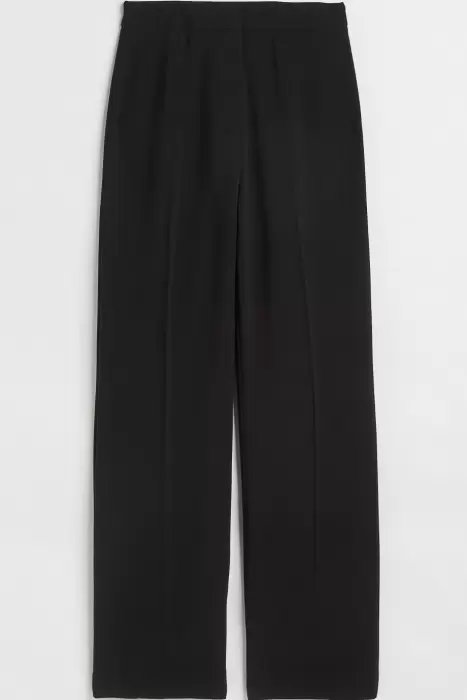 Pantalón en tela tejida de poliéster reciclado. Modelo de talle alto con cierre de zíper y gancho oculto, y piernas anchas con pliegues, esta super bonito.