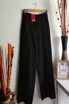 Pantalón ancho. Pantalón en tela tejida de poliéster reciclado. Modelo de talle alto con cierre de zíper y gancho oculto, y piernas anchas con pliegues, esta super bonito.