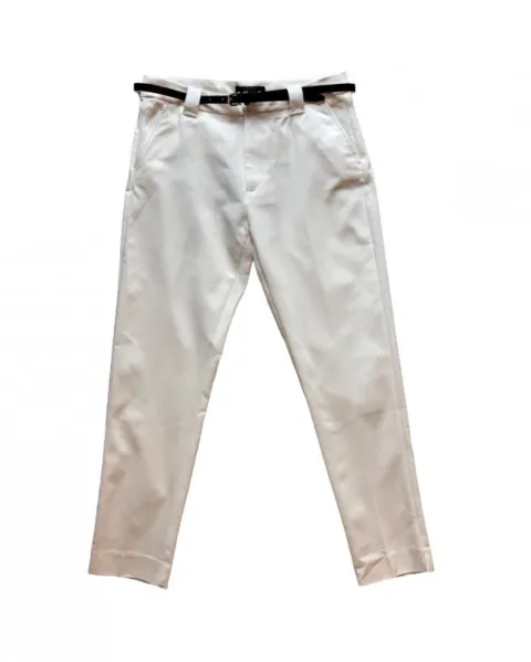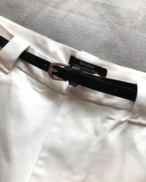 Pantalón Bershka color blanco es casual e incluye cinturón en color negro.