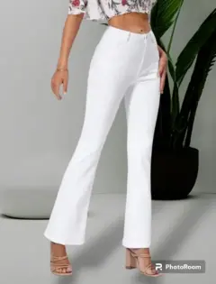 Pantalón blanco. Pantalón pierna amplia unicolor blanco marca SHEIN BAE nuevo tipo acampanado