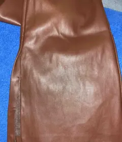 Pantalón café. Pantalón tipo polipiel café, ancho con abertura en la parte de abajo, amolda perfecto, Bershka talla 26
