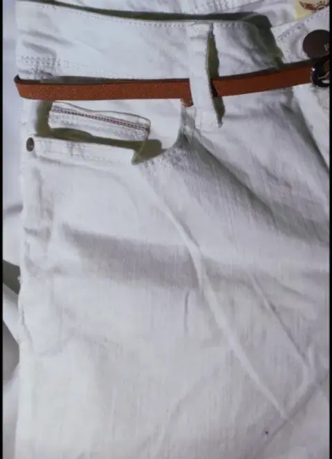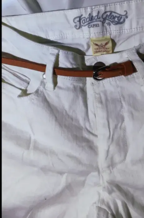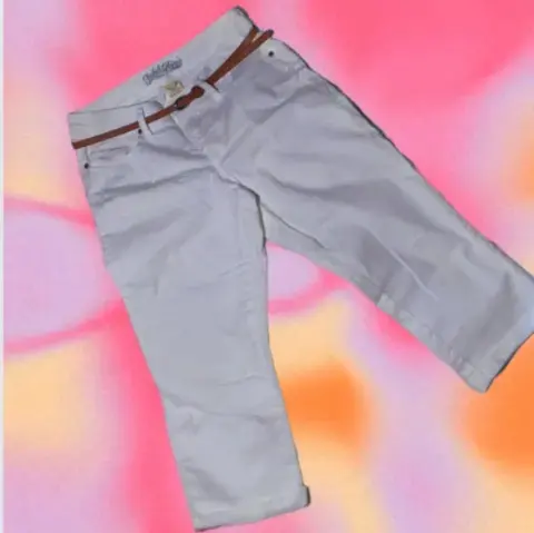 Pantalon Capri Blanco. Pantalon Capri Mezclilla Blanco, 🤍🧷Tiro Alto, Cinturón con Hebilla, Bolsillos,🧷Tipo Pierna Recta, Ajuste regular, Cremallera 🏷️Talla M / 3497% Algodón, 3% Elástico, - Quitar cinturón antes de lavarlo,- Lavar con agua fría y con colores similares,- Usar solamente blanqueador sin cloro cuando se necesite,- Planchar en frío.