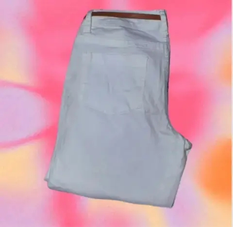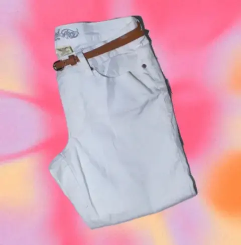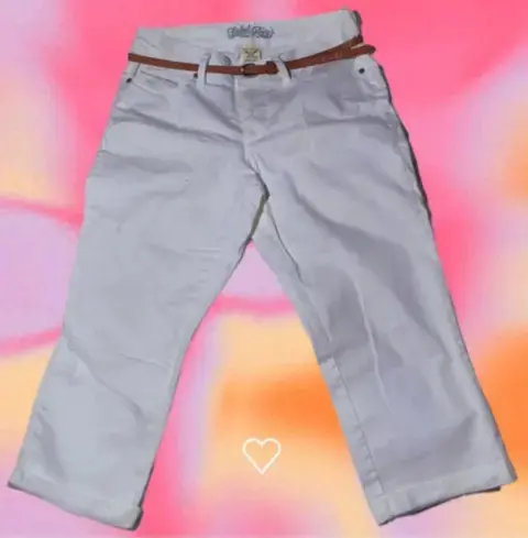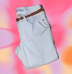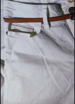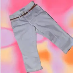 Pantalon Capri Mezclilla Blanco, 🤍🧷Tiro Alto, Cinturón con Hebilla, Bolsillos,🧷Tipo Pierna Recta, Ajuste regular, Cremallera 🏷️Talla M / 3497% Algodón, 3% Elástico, - Quitar cinturón antes de lavarlo,- Lavar con agua fría y con colores similares,- Usar solamente blanqueador sin cloro cuando se necesite,- Planchar en frío.