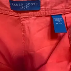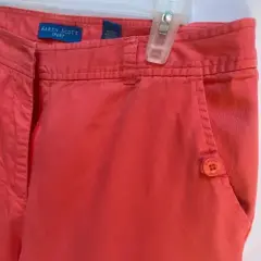 Pantalón Capri color salmón rosado en tela algodón tipo pana con caneleta, corte a la cintura y bolsas delanteras en corte diagonal con botón. Cierre y botón en Pretina; pinzas en la espalda. Valenciana en ambas piernas, corte recto. Talla: M (30-32) Puede quedar hasta una talla L. Marca: KAREN SCOTT.