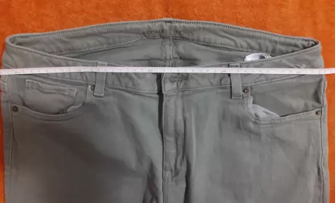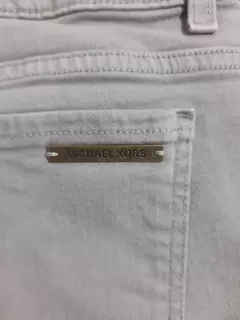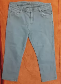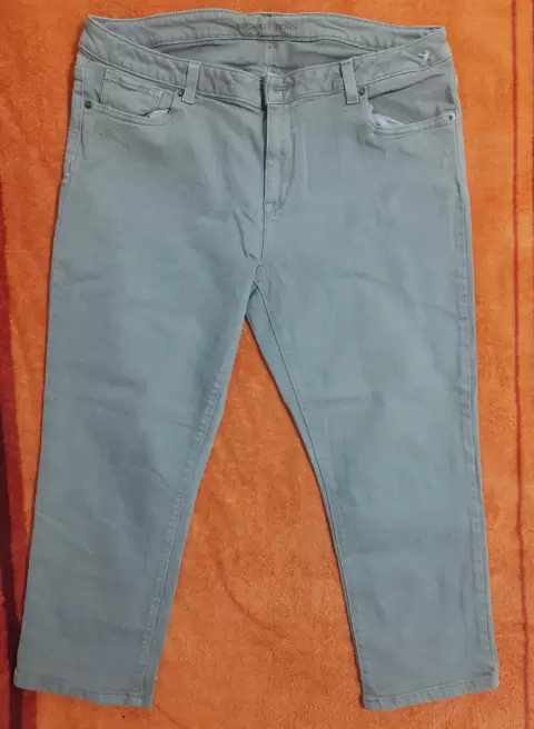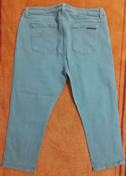 Pantalón capri de mezclilla MK. Color verde militar claro, talla 12, cintura 45 cm largo 79 cm, super cómodo