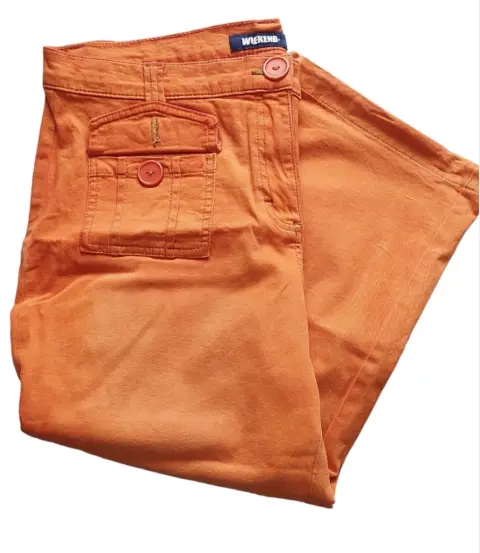 Pantalon capri color naranja, marca Weekend, talla 36, cierre funcional, 2 bolsillos delanteros, pretina para cinturon, 98% algodon, 2% elástico. Fresco y cómodo. Hagan sus ofertas!!