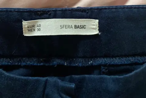 Talla 30, color azul marino, en buen estado súper cómodo, tele muy suave