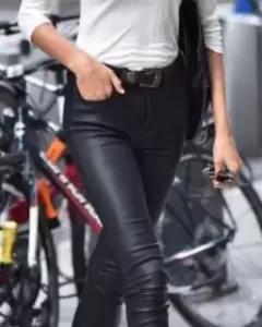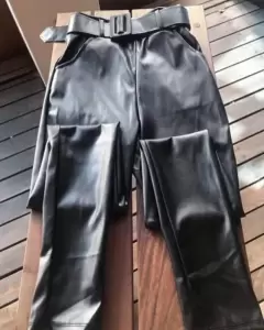 Pantalón cintura alta vinipiel. Padrísimo Leggins efecto piel mate con cinto y Bolsas queda de talla chica a la 36 hormann muy padre
